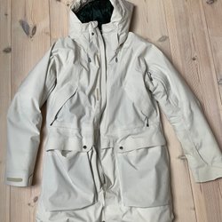 Beige tröja med dragkedja fram och ribbstickning vid ärmslut och nederkant. Samarbete med Nigel Cabourn och Peak Performance. Väldigt skön och praktisk tröja i en varm och go ullblandning,