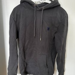 Mörk grå tröja med ett tryck på framsidan. Tröjan har en rund halsringning och långa ärmar. Storlek S