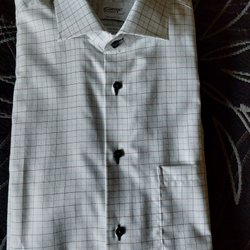 Byxor från Meyer i en mörkblå nyans. Byxorna har fickor fram och bak, samt en knapp- och dragkedjestängning. Detaljer som en metallbricka med logotypen "MEYER" finns ovanför den högra bakfickan och en knapp med "MEYER" på den vänstra bakfickan.