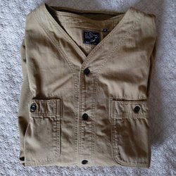 Klassiska army cargo pants i boro-utförande med olika gröna tyger. Byxorna har en justerbar rem i midjan och dragsko nedtill. Tillverkade i Japan. Obs! kort inseam: typ trekvartslånga! Se mått.