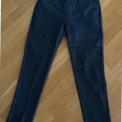 Eleganta mörkblå byxor från Filippa K. Byxorna har en resår i midjan och en smal passform. Perfekt för en avslappnad men ändå sofistikerad look. Observera att det finns en liten defekt på byxorna (se bild).