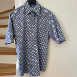 Ett par mörkgrå/mönstrade byxor med ett rutigt mönster. Byxorna har en dragsko i midjan för justering. Använda 1-2 ggr. Djur och rökfritt hem.