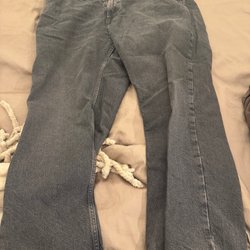 Svarta byxor med raka ben och normalhög midja. Byxorna har fickor fram och bak samt hällor för skärp. Försluts med dragkedja och knapp.
