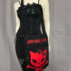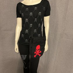Svart kortärmad skjorta med dragkedja framtill och dekorativa dragkedjor på bröstet. Skjortan har detaljer som nitar på axlarna och fickorna. Helt ny i storlek M. Har fickor. Material i bomull. Märke Lucifer.