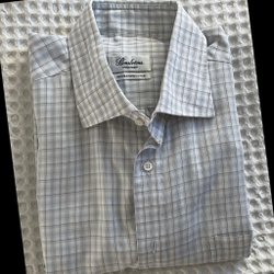 Rutig Stenströms skjorta two fold super cotton, Fitted body, med ljusblå, beige och bruna detaljer. Skjortan har en klassisk krage och knappar framtill.