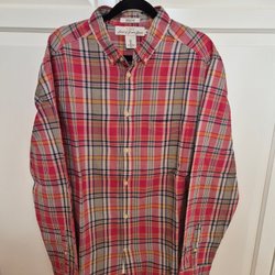 Färgglad skjorta med ett rutigt mönster i olika nyanser av rött, orange, gult och blått. Skjortan har långa ärmar, en bröstficka och en button-down krage. Den har en klassisk passform.