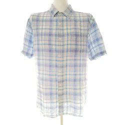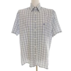 PIERRE CARDIN Ledig Skjorta Herr för Herr Rutig Blå XL Kort ärm Lin