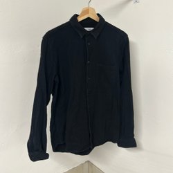 Svart skjorta med långa ärmar, krage och knappar framtill. Skjortan har två bröstfickor.