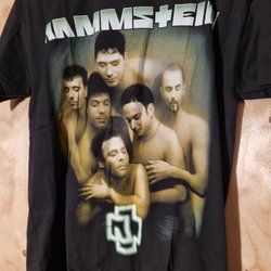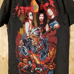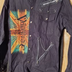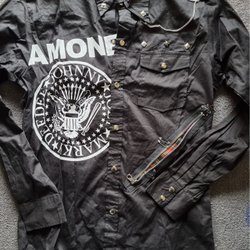 Svart skjorta med tryck av "PUNK ROCK" framtill och "THE EXPLOITED" baktill. Skjortan har dekorativa detaljer som kedjor, nitar och dragkedjor.