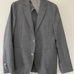 Grå kavaj från HM med två knappar fram och en bröstficka. Fodrad insida.