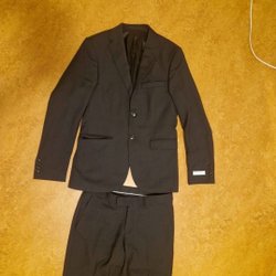 Storlek 150 i både kavaj och byxor, dvs 50 men lite längre ben på byxor och lite längre rygg på kavaj.