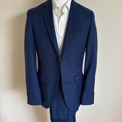 Elegant kostym i en ljusblå nyans. Kavajen har en klassisk passform med spetsiga slag och fickor med lock. Byxorna är matchande och har en stilren design. Perfekt för formella tillfällen eller för att skapa en sofistikerad look.