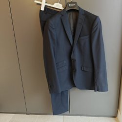 Kavajen har två knappar framtill, två fickor med lock och en bröstficka. Byxorna har en klassisk passform med dragkedja och knappstängning.