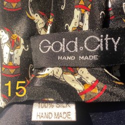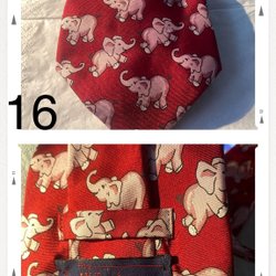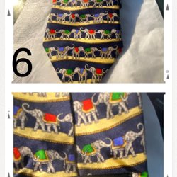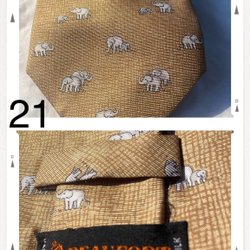 Ett slips med ett unikt motiv av elefanter och palmer. Slipsen har en mörkblå färg med ett mönster som ger en elegant touch.