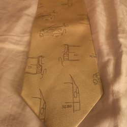 En elegant slips med ett unikt geometriskt mönster i olika färger. Slipsen är tillverkad i Italien och har en etikett som indikerar att den är speciellt framtagen för Volvo Flygmotor.