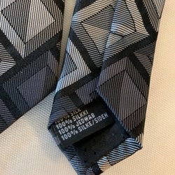 En elegant slips med ett distinkt randigt mönster i grönt och mörkblått. Slipsen är designad för att ge en sofistikerad touch till din outfit. 100% siden. 10 cm där den är som bredast och 3 cm på baksidan. Ca 151 cm lång.
