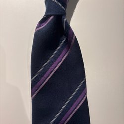 En slips med ett abstrakt mönster i olika färger. Slipsen har en bredare del som smalnar av mot nacken.
