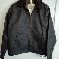 Denna mellanlånga jacka är tillverkad av ekologisk bomull och har en vattenavvisande vaxfinish. Den lösa passformen och de nedhasade axlarna ger en avslappnad silhuett, som kompletteras av en krage i manchester, jeansknäppning och flera fickor. Den här produkten är tillverkad i Storbritannien och är utformad för att hålla länge; regelbunden omvaxning rekommenderas.