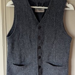 Saknas två knappar och finns en liten lagning på insidan men i övrigt fint skick.