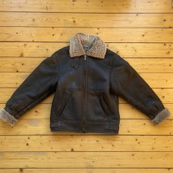 Brun shearling pilotjacka. Jackan är gjord av äkta läder och får ull. Jackan är väl använd men har mycket kvar att ge. Se bilder för skick