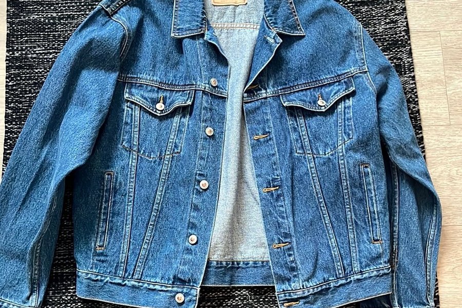 Klassisk jeansjacka med knäppning framtill och två bröstfickor med knappar. Jackan har en traditionell krage och en avslappnad passform.