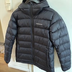Svart Peak Performance vinterjacka med huva. Pälskragen är avtagbar. Jackan har flera fickor och en innerficka med dragkedja. Perfekt för kyligare dagar. Mycket fint skick.