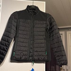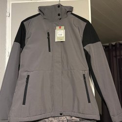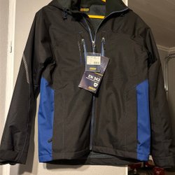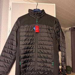 Svart och grå jacka med huva och byxor. Jackan har dragkedja fram och flera fickor med dragkedja. Byxorna har också dragkedja och fickor. Skylt ex se övriga auktioner OBS jackan i xl byxorna xxl. Se bilder för egen bedömning