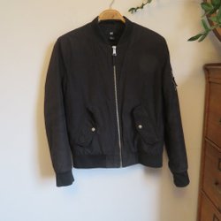 Svart bomberjacka med dragkedja fram och en liten ficka med dragkedja på vänster ärm. Jackan har ribbstickning runt halsen, ärmsluten och nederkanten.