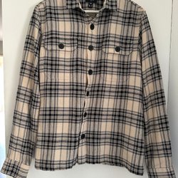 Olivgrön jacka med långa ärmar, knappstängning framtill och fyra fickor på framsidan. Jackan har epåletter på axlarna och en klassisk krage.