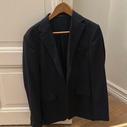 Denna jacka är en fleecejacka i en olivgrön nyans. Den har en hel dragkedja framtill och förstärkningar i ett slätare tyg över axlarna och armbågarna. Jackan har en hög krage.