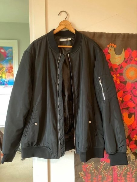 Svart bomberjacka från Black story. Stl XL 48/50. Eventuellt lite liten i storlek men osäker. Knappt använd.