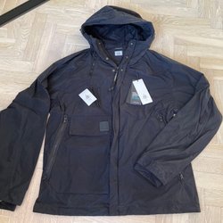 Svart jacka från Helmut Lang med huva och dragkedja framtill. Jackan har bruna detaljer vid ärmslut och diskret logga på bröstet, fickor fram och justerbara ärmslut. Mycket hög kvalitet, tejpade sömmar. Runt 8500kr nypris. Sparsamt använd.