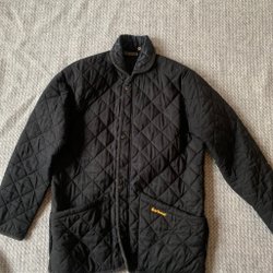 Barbour-jacka med diamantquiltning och en krage i manchester. Jackan har tryckknappar framtill och två fickor med lock samt en bröstficka med dragkedja. Solblekt manchesterkrage!