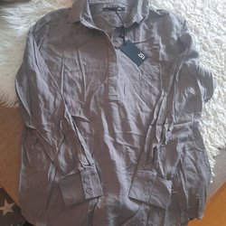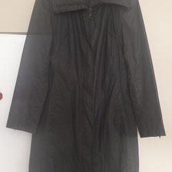 Fleecejacka med hel dragkedja framtill och hög krage. Jackan har ett rutigt mönster i olika nyanser. Ofodrad. Jackan har ett par pyttesmå märken på ena sidan fram. Syns inte om man inte söker efter dom. Ingen storlekslapp men passar en L , XL.