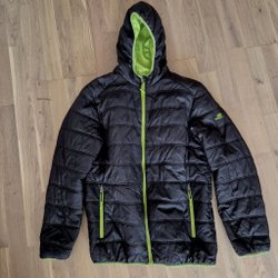 En jacka med dragkedja framtill och en vadderad kropp. Jackan har en hög krage och långa ärmar. Den har en ficka med dragkedja på ena sidan framtill. Skön och tunnare variant.