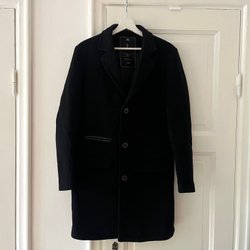Svart vadderad jacka med hög krage och dragkedja fram. Jackan har även en liten ficka med dragkedja på bröstet och två sidfickor. Insidan har en innerficka. ”Water repellent & windproof”. Lite ljusare färg fram på kragen. Använd en säsong! Märkt S men jag brukar vara mellan S & M och sitter bra på mig.