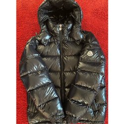 En svart moncler maya i rätt bra skick. Storlek 3 ~ M/L. Små pinholes som visas på bild men knappt synliga vid användning. Cartoonen sitter kvar men många stygn har lossnat.