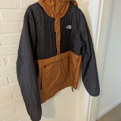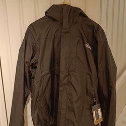 Svart jacka med luva från The North Face. Jackan har dragkedja fram och två fickor med dragkedja. Logotypen finns på bröstet och baksidan av axeln. Jackan är en vadderad modell.