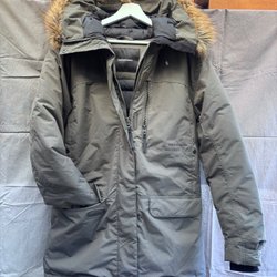 Säljer en varm täckjacka. I bra skick. Har haft nya jeans som färgat av på insidan. Kan eventuellt gå bort i tvätt. Har inte provat.