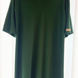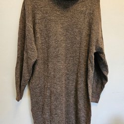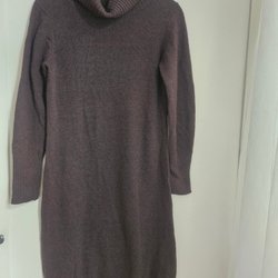 Ribbstickad brun klänning med polo. Liten slits i sidan. Stl L.