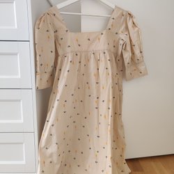 Vit och limegrön klänning från danska märket Karen by Simonsen. Storlek 42. Endast använd vid enstaka tillfällen. Minns inte exakt vad jag köpte den för men mellan 1000 - 2000 kr.