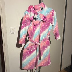 Leopardmönstrad klänning med långa ärmar och knytband i midjan.