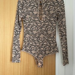Elegant och stilren klänning strl XS/S,/enligt min bedömning/, i en vacker beige färg. Överdelen har en smickrande omlottdesign med v-ringning och ett markerat midjeparti med ett tillhörande band som knyts i midjan. Kjol delen är ribbstickad vilket ger klänningen en fin rörelse och textur. Långärmad med ribbstickade detaljer/se bilderna. Måtten:
