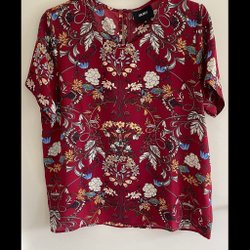 Skön elegant klänning från Ilse Jacobsen i storlek L. Klänningen har en v-ringning och 3/4 ärmar som ger en sofistikerad touch. Den har ett vackert mönster i marinblått och vitt och en dekorativ knytdetalj i midjan som knyts och framhäver figuren.