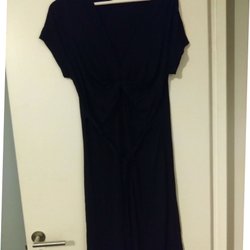 Svart klänning med v-ringning och korta ärmar. Klänningen har utskärningar i midjan och en slits på sidan.