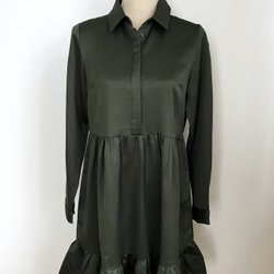 Klänningen har en hög hals och en utskuren detalj baktill.