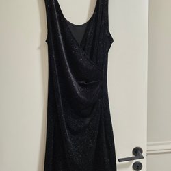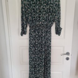 En snygg och bekväm klänning med rund hals och korta ärmar med upprullad detalj. Klänningen har en avslappnad passform och en något längre längd. Perfekt för en ledig dag. Använd 1 gång bara passade ej mig.