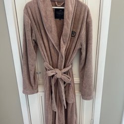 Svart klänning med lång ärm och slits på båda sidor. Se bild på slits där den gått upp lite i sömmen.