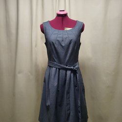 Grå klänning med lång ärm och knytband i midjan. Klänningen har en hög krage.