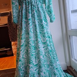 Saknar storleksanvisning se angivet mått! Mått mellan armhålorna ca 51 cm x 2, längd ca 126 cm. Accepterar inte avhämtning. Meddela gärna om du vill invänta bidrag eller lön innan betalningen.
